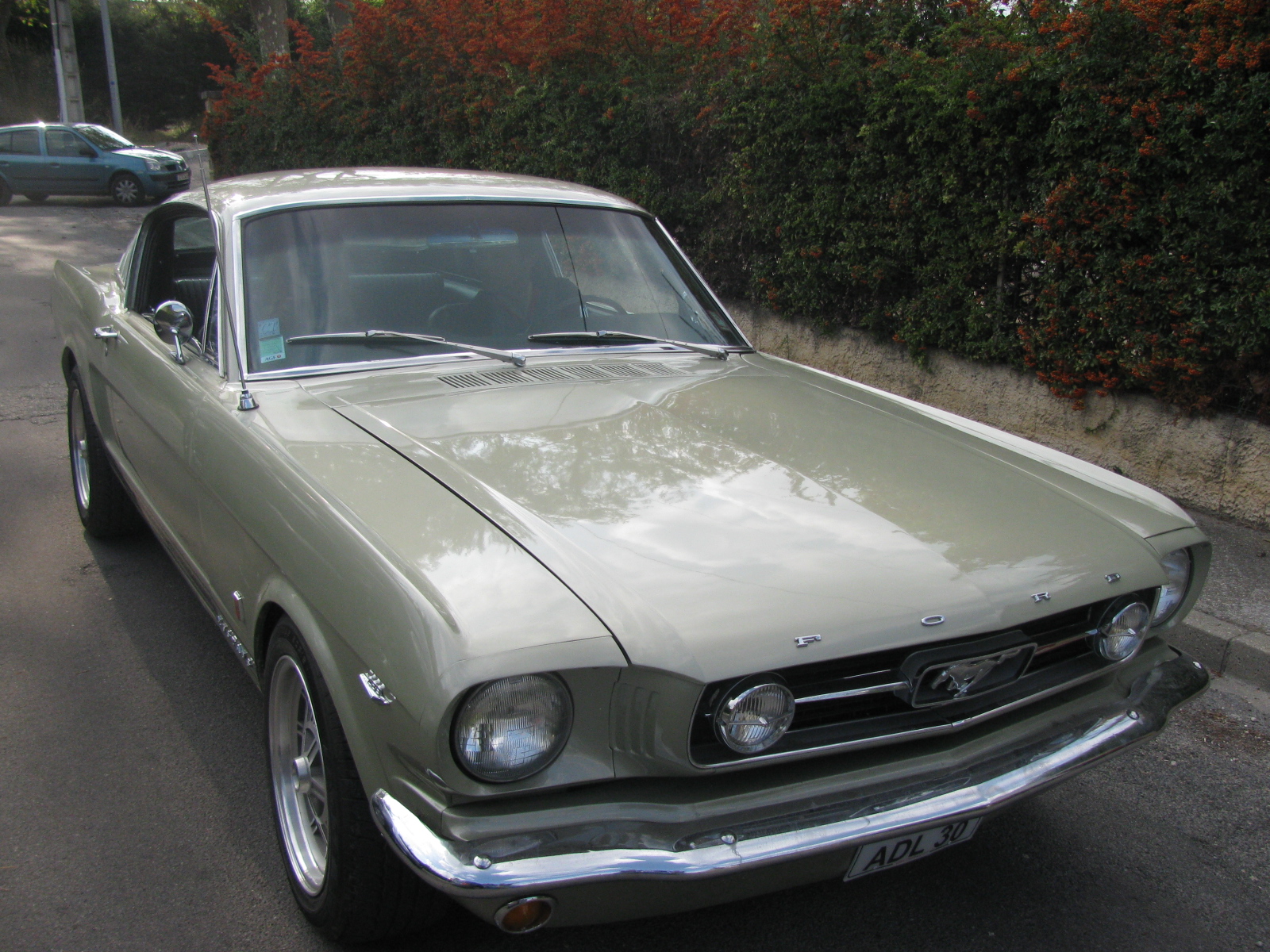 Voila la voiture est au garage chez mon pere et prendra l'air fin Septembre lors de mes conges en France, peut etre pourrais-je alors croise d'autres fans et proprietaires de mustang